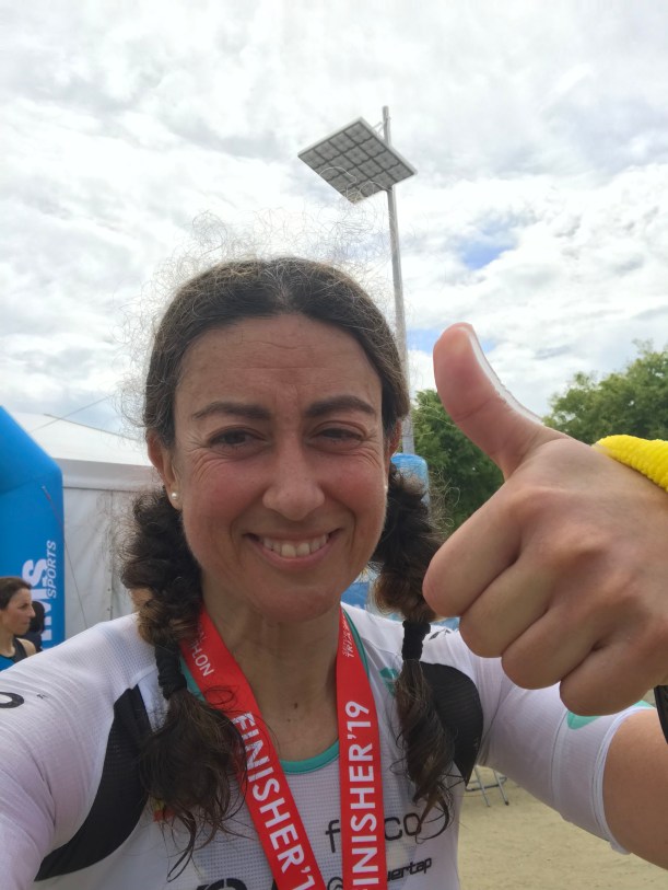 El pasado 14 de octubre, pude cumplir un sueño. Demostrarme a mi misma que puedo hacer lo mismo que antes. No ha sido un camino sencillo pero poder seguir sintiéndome «triatletilla» durante todo este año ha sido el mejor medicamento para mi recuperación. Vuelvo a ser finisher en un triatlón de Media Distancia (1900m nadar – 90km bici – 21km correr)