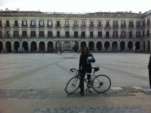 El lunes tenía que estar en Bilbao por la tarde por trabajo, así que nada mejor que aprovechar y de camino hacer una paradita en Vitoria, y bien acompañada por mi amigo Juan Mongelos, hacer el recorrido de la carrera a pie pero en bici.