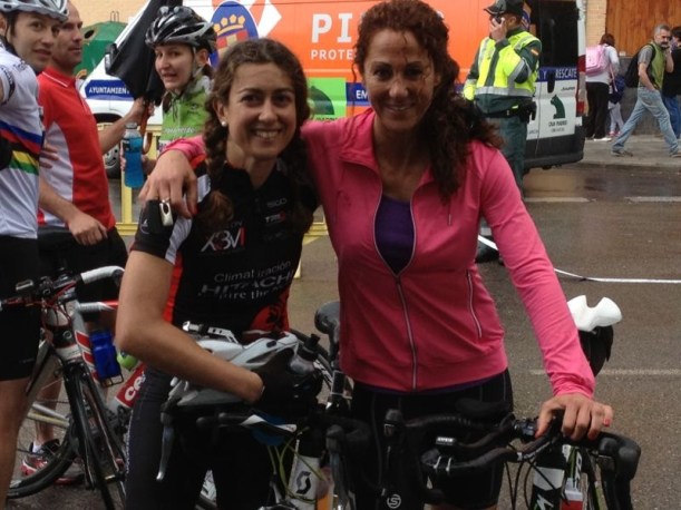 20km antes de llegar a la primera meta, me empezó a doler la cadera (como siempre) y estuve a punto de quedarme en «medio fondo». Pero Javi me dijo que ni hablar, que «tocaba entrenar 5 horas»… Con lo cumplidora que soy yo…ya ni me lo pensé mas. A por el recorrido de GRAN FONDO!