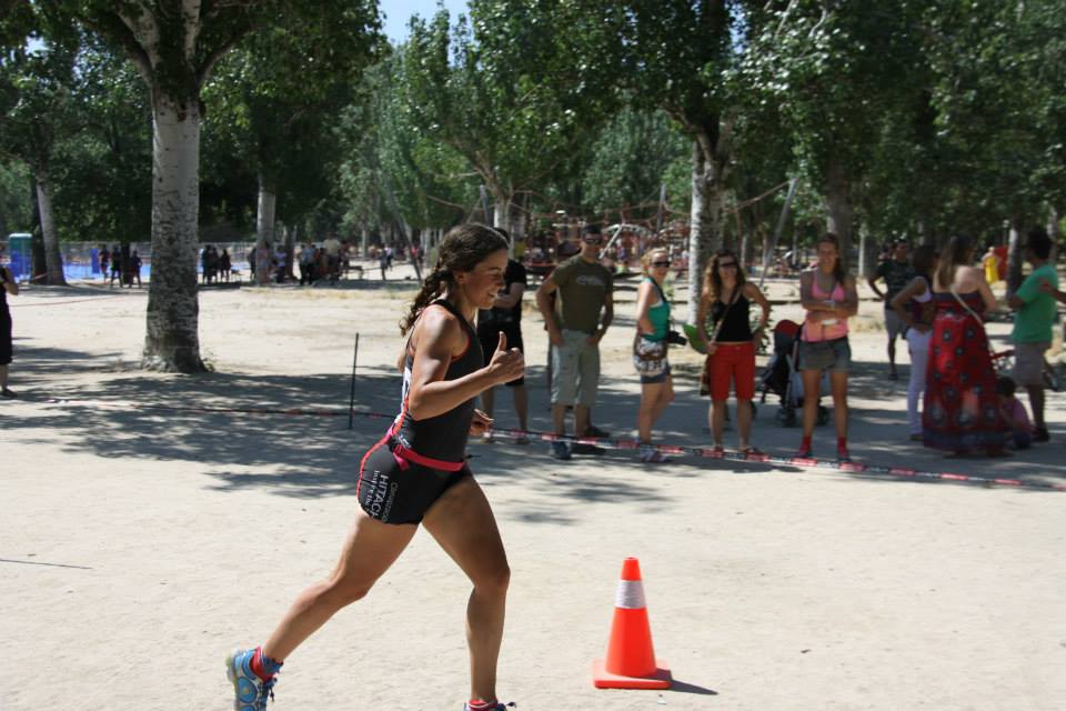 Salgo de la transición, y me queda la gran temida carrera a pie! Asustada por el sufrimiento que podía vivir. Me pongo a correr, clavo el pulso en 151ppm y me encuentro un panorama que no tengo palabras para explicarlo!! que espectáculo de gente animando, que alegría pasa por todo mi cuerpo. y yo a un ritmo por debajo de 6min/km más feliz que unas castañuelas. Me empiezo a encontrar fenomenal, con ritmo y me pongo a disfrutar de todo ese público que cuanto más les das más se vuelca… Sin palabras.