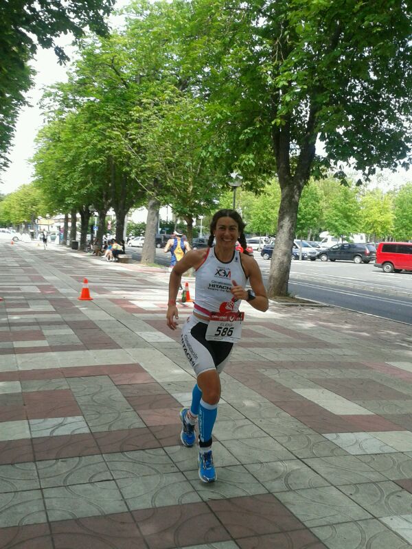 Salgo de la transición, y me queda la gran temida carrera a pie! Asustada por el sufrimiento que podía vivir. Me pongo a correr, clavo el pulso en 151ppm y me encuentro un panorama que no tengo palabras para explicarlo!! que espectáculo de gente animando, que alegría pasa por todo mi cuerpo. y yo a un ritmo por debajo de 6min/km más feliz que unas castañuelas. Me empiezo a encontrar fenomenal, con ritmo y me pongo a disfrutar de todo ese público que cuanto más les das más se vuelca… Sin palabras.