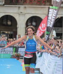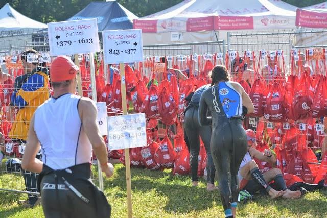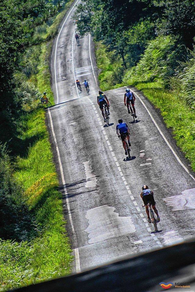 La bici empieza a ir mejor de lo que esperaba. La bici rueda bien, y aunque hay más viento del que esperaba, no tiene absolutamente nada que ver con el año pasado. En el camino me encuentro con mis hijos, Mar, Ernesto e Iker, que me animan un montón! En la bici me pasa mi cuñado Carlos, y Javier Albares dándome ánimos. En la última vuelta, me encuentro con María… compañera de otras competís… que no entiendo de donde sale pues la suponía por delante… Tuvo que hacer parada técnica. Por fin llego a Vitoria, y me pongo a llorar de emoción cuando voy a entrar en la T2… Y es que es increíble ver a todo el mundo animando!!