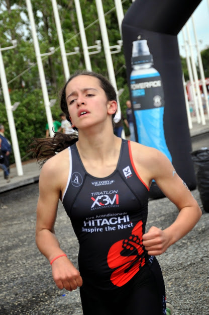 Como llevaba el garmin en la muñeca, no lo veía bien, y empecé muy a sensaciones… Estaba tan animada que salí volada, a super buen ritmo con el pulso a umbral y adelantando un montón de gente. Pillo a alguna chica con dorsal que empieza por 6 (mis competidoras), y alcanzo al dorsal 613. No le debió hacer mucha gracia, porque me pegó un pasada subiendo la cuesta que fui incapaz de ir a por ella. Qué mosqueo me pillé! Se me estaba escapando y lo peor es que la perdi completamente de vista! Esta ella muy fuerte o yo floja? jajaja. Antes de llegar al final de la primera vuelta me encuentro con Mpaz, que me cuenta que lo ha pasado fatal en la natación y que ha salido mal, en 31min. Me despido y tiro, y en el giro de Lisboa me encuentro a la familia animando!!! Eso si que da alas! Primera vuelta a casi 34km/h de media. No está nada mal!